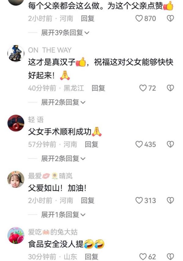 视频在网络上曝光后,引发了大量社会网友关注,纷纷送上祝福,都希望他们这对父女能好起来,经历了这段磨难,以后的人生必然是坦途。
