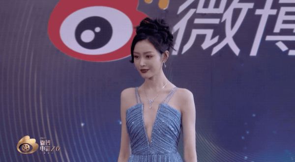 8月14日,张天爱一席碎钻蓝色深v长裙出席微博电影之夜,直角肩天鹅颈,美若天仙。