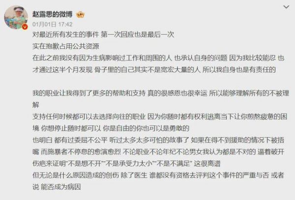 2025的元旦,沉默许久的赵露思终于亲自发长文,解释自己患病的前因后果,也算是给公众一个交代。