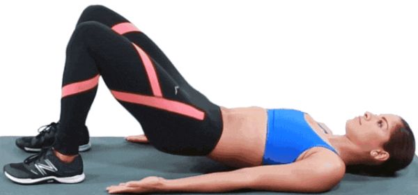 我们先让自己躺到地面,然后双脚膝盖弯曲,双脚踩稳地面,接着保持臀部和大腿的紧张,让自己臀部抬起,使得大腿和腹部接近一条直线。