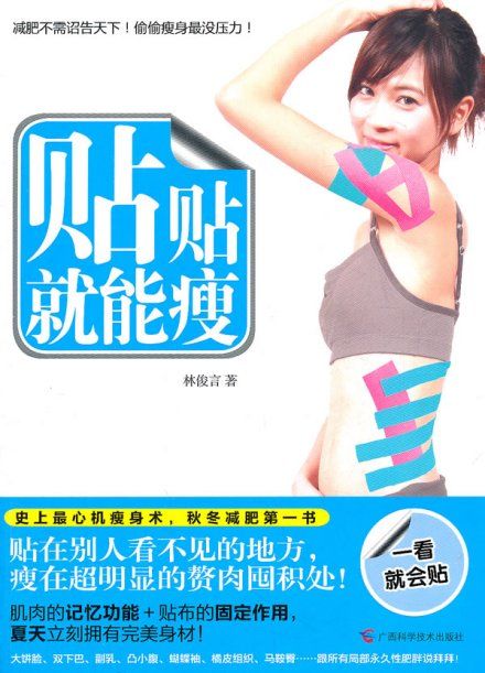 《贴贴就能瘦》内容简介:减肥瘦身不需要诏告天下!偷偷瘦身最没有压力!一本《贴贴就能瘦》,让你马上华丽变身!夏天,不用再害怕露手臂、露腿,大胆地露出来还能赢得赞叹声!到底什么是肌内效运动贴布?肌肉的记忆功能+贴布固定着肌肉,热量消耗速度Double!由日本医师发明的肌内效贴布,可提供支撑和稳定肌肉的效果,贴上后不会影响一般日常生活的活动,而且可以使用于激烈运动中,甚至有减低酸痛和加速热量消耗的效果。贴布本身不会因为遇水而脱落,黏着的材质不含乳胶,撕开后不会留下残留物,也不容易过敏。除了可以每天贴、洗澡也不用撕掉之外,身体的该部位如果已经长期使用肌内效贴布,在贴布撕下之后,该区域的肌肉还是会有记忆住贴布的效益,而不再成为一盘散沙,让减重及消耗热量的效益长长久久!原来肌肉有记忆!!利用这一点,快速地减去身上多余的脂肪吧!还记得曾经听过一则新闻:肌内效贴布具有帮助减肥的效果!是的!肌内效贴布大多用在治疗运动员或是肌肉拉伤……等等的情形的人身上,一般人较少听过。但是你知道吗?近期透过医疗实验发现,可以记忆肌肉脉络的肌内效贴布能够把我们身体特定部位的肌肉凝聚在一起,达到加倍消耗热量的功效!台湾物理治疗师林俊言医师,现在就带领各位利用肌内效贴布,搭配随时随地都能做的心机小运动,利用冬天穿着厚重衣物的时机,好好来一场心机减肥大赛吧!