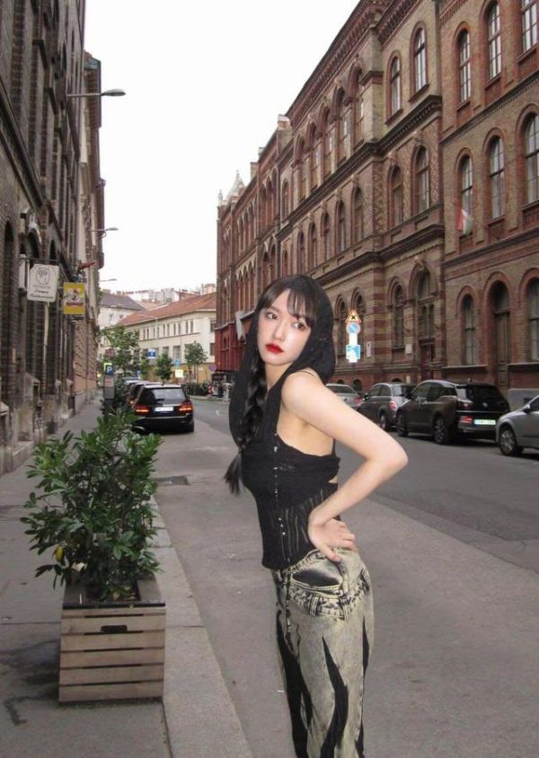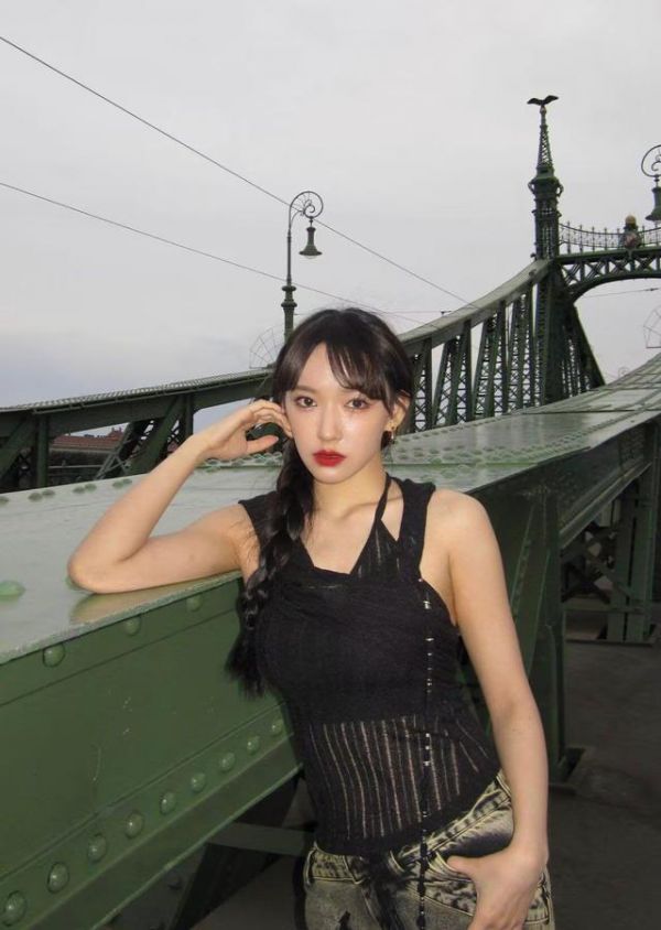 她不仅将服装设计细节处理得很好,整体色调方面也拿捏得十分到位。虽然属于深色系穿搭,但他这身穿搭完全没有出现沉闷感,反而能够让穿搭充满少女的活泼感。