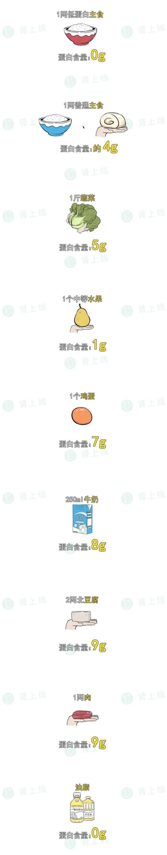 注意,低蛋白饮食并不是越低越好,刚刚我们强调了,蛋白质是维持生命活动的重要营养物质,过少的蛋白质会造成营养不良。不建议肾友每日蛋白质摄入量低于0.6g/公斤。