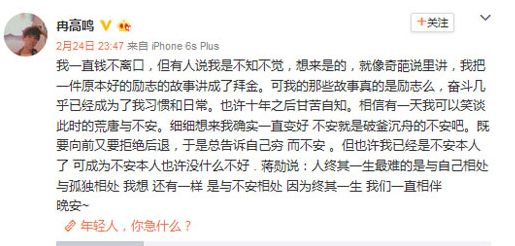 虽然之后冉高鸣尽力把自己想要表达的内容给说完了,但他的三观和高晓松打断的做法均在网上引发热议,这种事儿不能说谁对谁错,只要自己三观正,这些都没有什么大影响。
