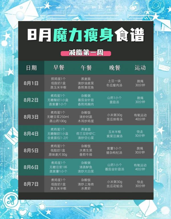 8月瘦身食谱来啦!跟着这份食谱,好好吃饭也能快乐享瘦哦!