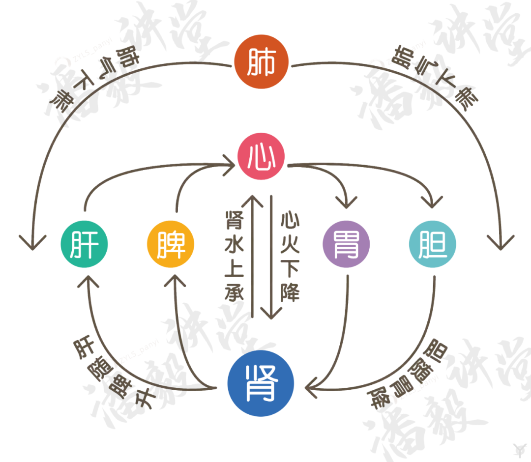 胃气帮助心火下降,温暖肾水,让肾水不过于寒,否则就容易出现腹泻、畏寒、腰腿凉等肾阳不足的情况。
