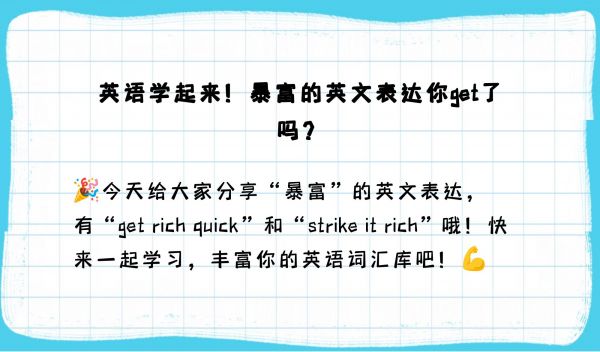 总结一下,想要表达“暴富”这个意思,我们可以使用“get rich quick”或者“strike it rich”。同时,了解一些与财富相关的英语表达和口语习惯,不仅能让我们在交流中更加得心应手,还能增加我们的词汇量哦!