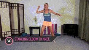 热身动作,尽可能的抬高腿与手肘交替相碰。次数:4组,每组30秒