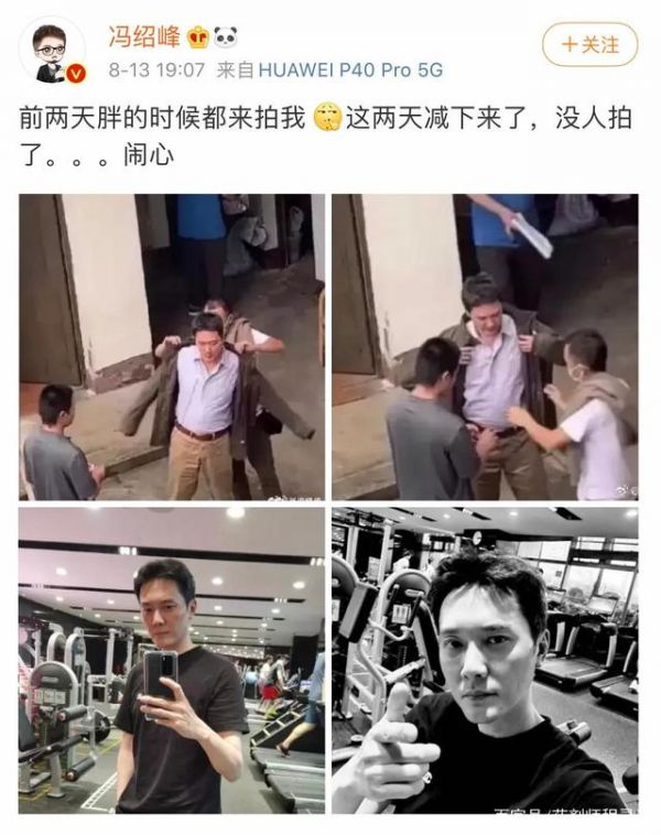 赵丽颖老公冯绍峰(真的没想到有一天要这样介绍我峰叔,当年一群人在天涯为彼时还年轻的峰叔盖楼的时候,赵小刀还没有出江湖。不过现在江湖上,赵小刀的名气确实已经盖过峰叔了。)晒了一张自己瘦下来的照片,感慨说:胖的时候被人各种拍照片,现在瘦下来了,反而没人拍,所以只好晒自拍。