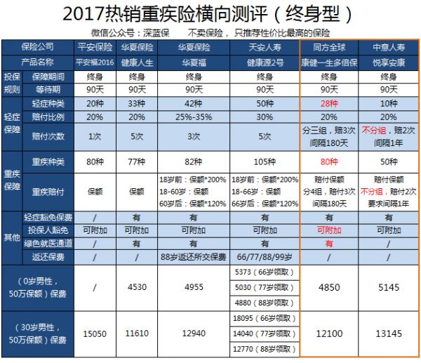 2017市场热销重疾险横向对比分析>>>