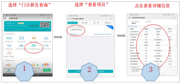 06检查报告查询:可以通过健康聊城公众平台在线查询,也可通过自助机“刷码”打印检验报告。