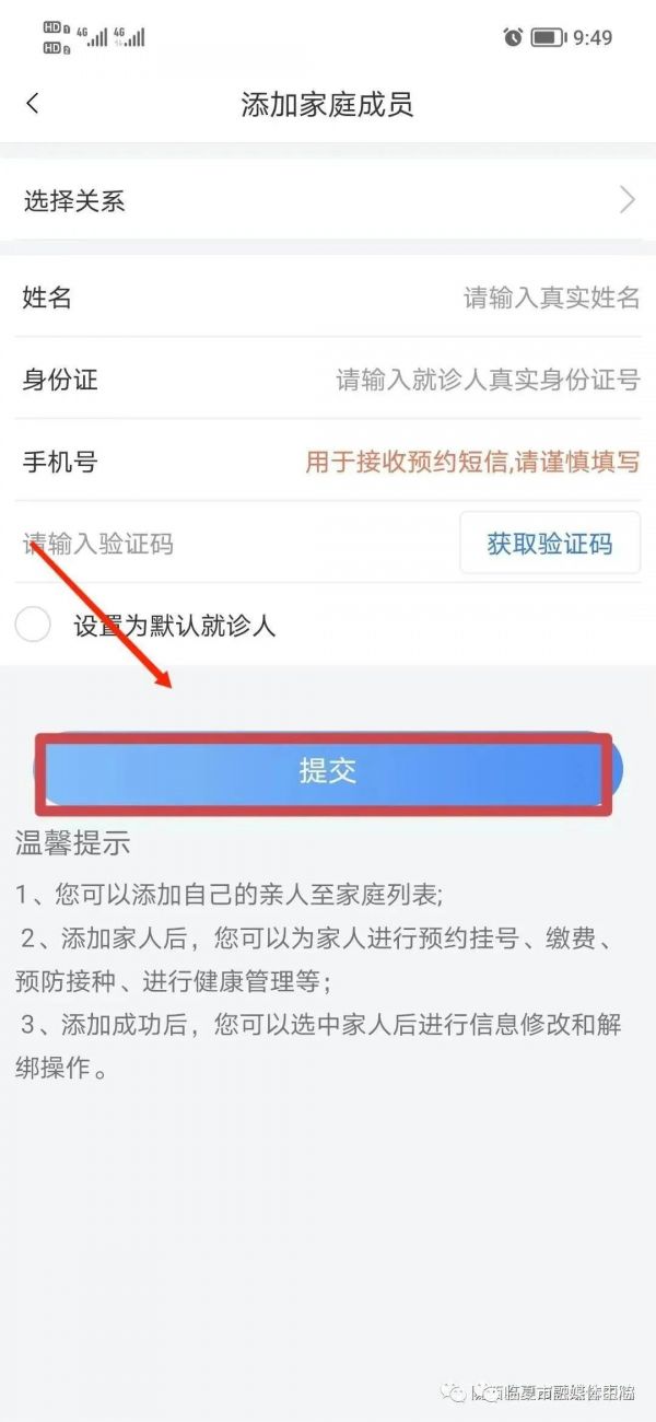 4. 在新增页面选择关系,填写姓名、身份证、手机号等信息,然后点击“提交”。