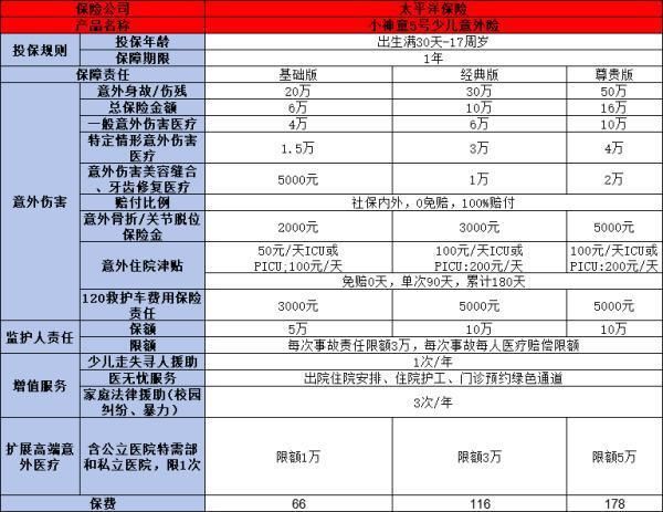 它不仅提供意外身故或伤残保障,还涵盖了一般意外伤害医疗、特定情形意外伤害医疗等多项责任。价格方面,基础版仅需66元,经典版116元,尊贵版也只需178元,性价比极高。