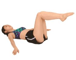 双腿弯曲,上半身不动,将双膝转向左侧,头部转向反侧,然后换方向没这样左右相互交替,持续10组。