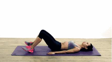双臂放在臀部下方,臀部慢慢提起,腿部向外展开。一次10秒钟,持续10组。