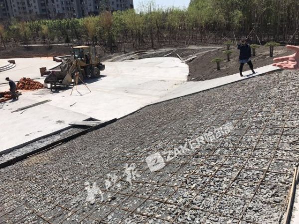 记者注意到,在园内绿地里铺设了一条条石子道路,通向一处处小型的蓄水池,而这些蓄水池上又建设了栈道、凉亭等设施,又形成了新的景观。