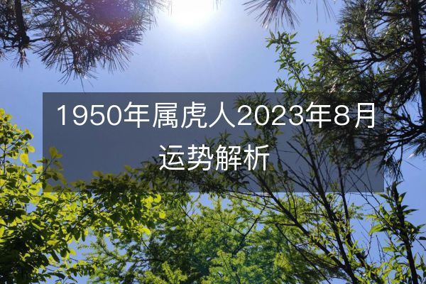 1950年属虎人2023年8月运势怎样?属虎的朋友,性格开朗,天生好强,性格洒脱,喜爱接纳挑战,做事情很有冲劲;为人大方,心胸开阔,有包容之心。而1950年生下来的属虎人进入到2023年早已50岁了,1950年属虎人8月运势怎样?