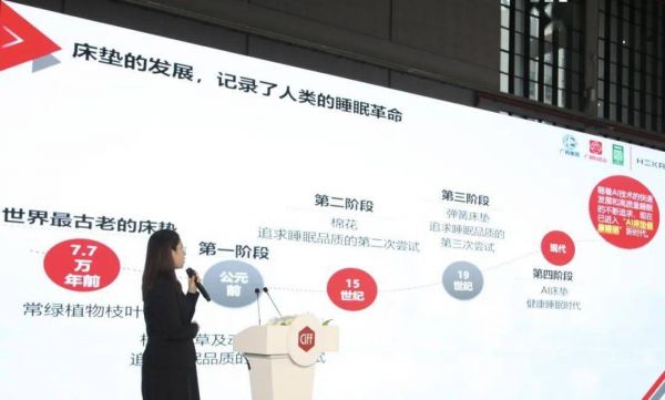 香港浸会大学博士后、广药集团白云山壹护公司研究员李宛霏从睡眠文化角度发布睡眠与床垫的历史变革研究成果。“解决舒适和健康是床垫变革的核心”,她表示,在智能化时代,睡眠障碍问题日益严重,催生亿万级市场的大背景下,市场急需好产品,而AI床垫便是时代催生的前沿科技产物,AI床垫必将掀起第四次床垫革命。