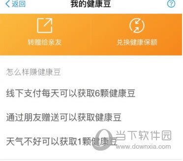 用户可以通过线下支付每天可以获取6颗健康豆;通过朋友赠送可以获取健康豆;天气不好可以获取1颗健康豆。