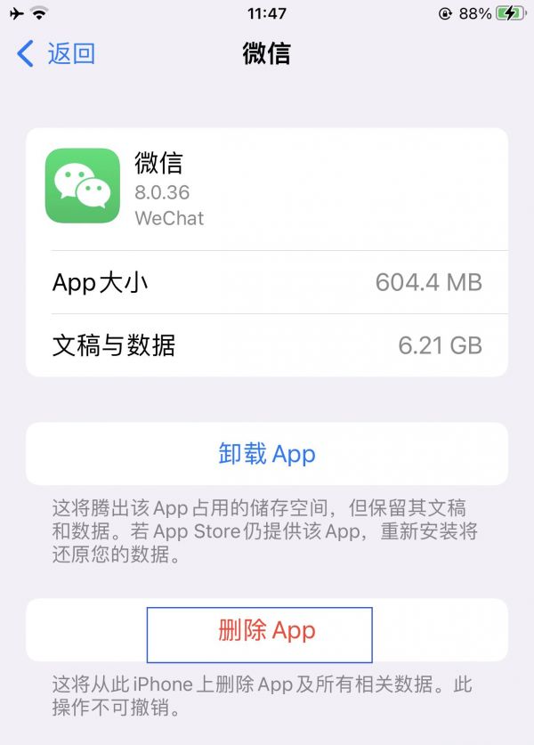 从上图可以看出,该app文稿和数据占据了6GB多的数据,因此,选择“删除app",清理掉它占用的空间,可以深度的清理iPhone。需要注意,”卸载app“和”删除app“的区别,后者更加的深度清理存储,通过删除app的方式卸载后,再重装,会发现腾出了不少的空间。