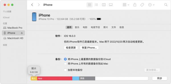 2、使用“访达”或 iTunes 来检查 iphone手机上的储存空间。