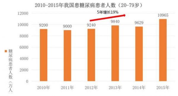 根据世卫组织2016年的报告,我国糖尿病患者数量已经达到了1.1亿,从2010年到2015年的五年内增长了19%,并且有5亿成年人都处在糖尿病前期,诊断率却未到40%。