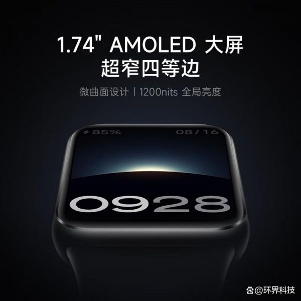 绚丽大屏设计,提升视觉体验。1.74英寸AMOLED彩色屏幕在细节上做到了极致,清晰度令人惊艳。超窄边框设计让使用界面显得更加开阔,而1200nits的全局亮度则确保即使在阳光下也能清晰可见,让你无论是日常佩戴还是运动时都能轻松查看数据。