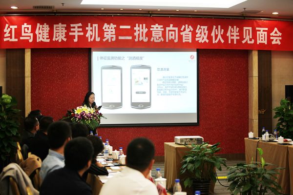 在极具差异化的红鸟健康云手机上市之初,以什么样的方式和时常见面,喜年科技副总裁丁宇先生,在会上为来宾解读了红鸟健康云手机品牌战略及市场策略。