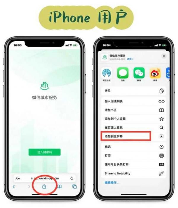 iPhone 用户选择“ iOS ”然后长按复制链接,接着在 Safari 浏览器中,粘贴链接,点击浏览器底部的「分享」按钮,再点击「添加到主屏幕」。