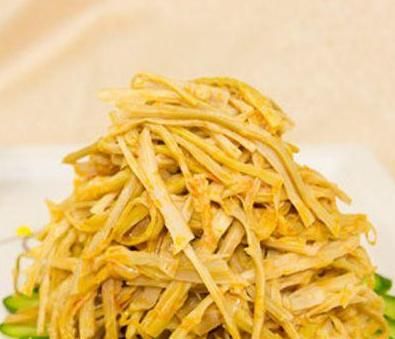 2.春笋煮熟,切成同肉丝粗细长短相等的细丝。