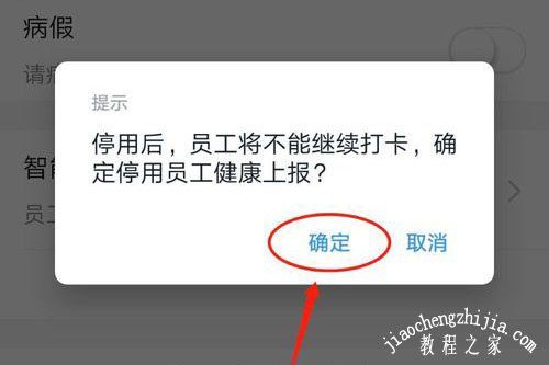 4、向上滑动页面,然后点击页面下方“停用员工健康打卡”。