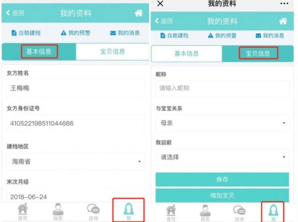 1、登陆“健康廊坊”APP首页,点击“廊坊妇幼健康”图标,然后点击右下方的 “我”,进入我的基本资料界面,完善基本信息,之后就可以体验里面的各项功能了。(填写完基本信息和宝贝信息即算母子手册已注册)