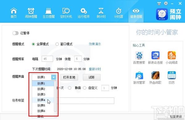 以上就是小编今天跟大家分享的使用预立闹钟这款软件的时候设置健康提醒的具体操作方法,有需要的朋友赶紧试一试这个方法,希望能帮到大家。