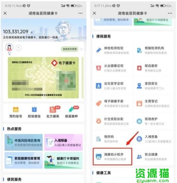 通过置顶湖南省居民健康卡、“健康320”等公众号快速亮码。