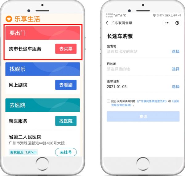 “乐享生活”板块,针对老年人经常使用的出行、娱乐、就医三个方面进行了专题分类,一键直达服务。