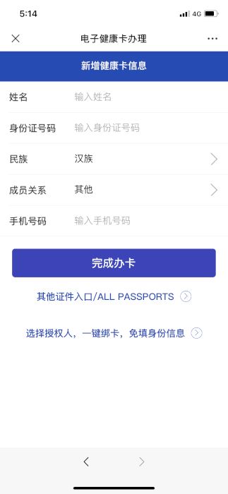 2.健康卡办理,通过填入个人信息,姓名,身份证号,手机号等多种方式快速的完成办卡。