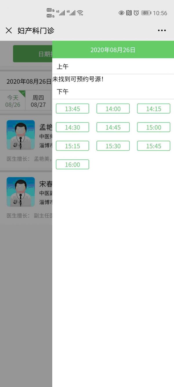 患者通过预约挂号功能,能够提前预约指定大夫指定时间的门诊,可享受优先就诊。患者点击“预约挂号按钮”进入预约诊疗服务页面,选择“淄博市中医医院”,选择想要预约的大夫,选择时间点即可预约。如图所示。