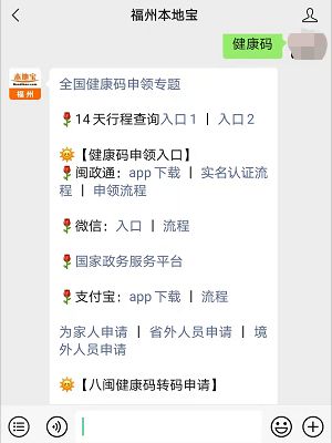 温馨提示:微信搜索公众号福州本地宝,关注后在对话框回复【健康码】获取健康码各渠道申领入口、申领详情,转绿码申请、咨询电话常见疑问解答等信息。