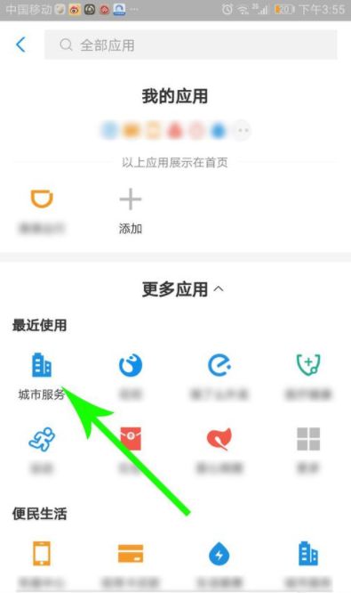 打开支付宝首页点击“更多”,然后点击“城市服务”。