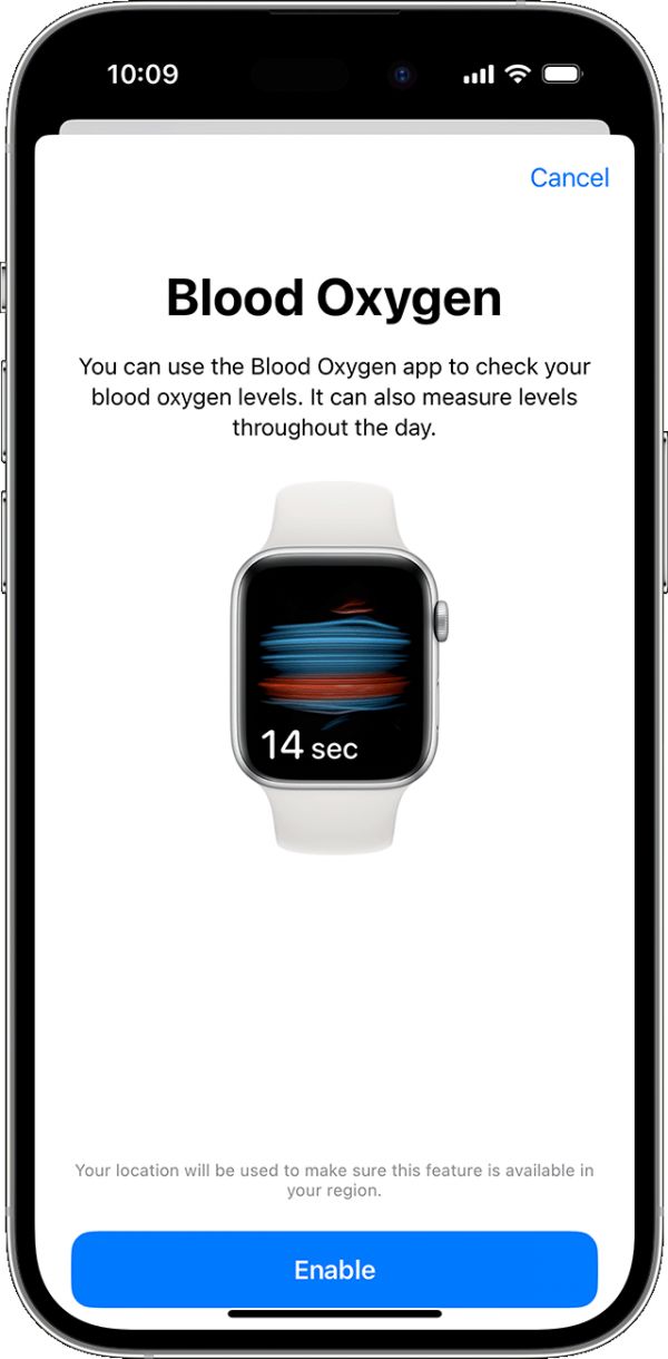 确保你所在的国家或地区能够使用“血氧”App。你可以在设置过程中看到这方面的信息。