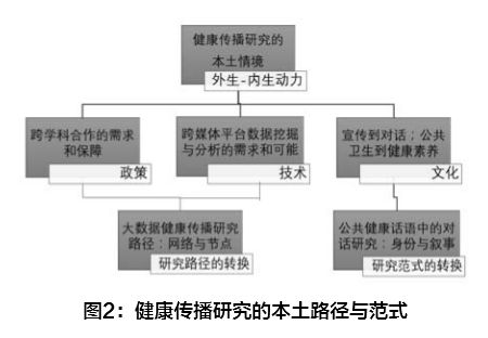 第二, 国家战略层面为跨学科的合作提供了保障。2011年《卫生部关于全面加强和改进卫生新闻宣传工作的意见》出台并首次提出“科学传播健康知识”,并强调要在健康传播中“提高公共关系管理能力”。2016年出台的《健康中国2030》从国家战略层面凸显了健康传播在医疗资源分布不均、老龄化趋势、国民健康素养偏低以及医患关系紧张等新形势下的重要意义,并当健康传播已经上升为国家战略的今天,跨学科的合作和互补已然成为健康传播研究的当务之急。