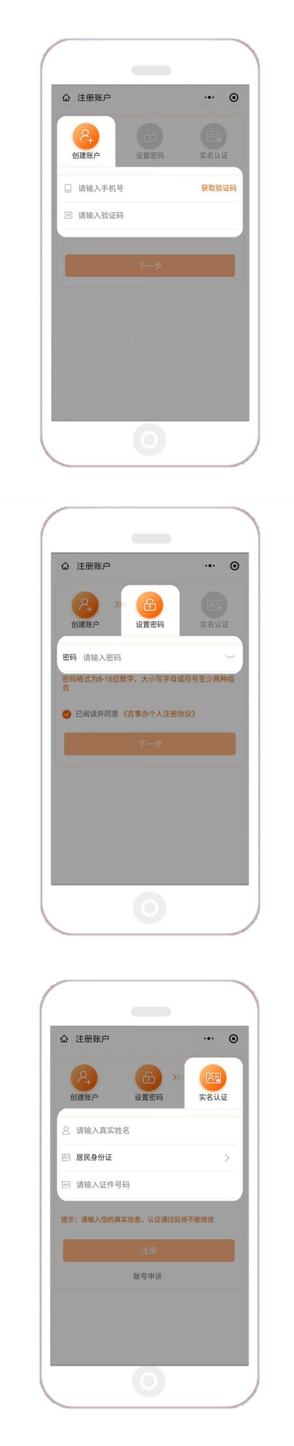 未注册微信“吉事办”小程序看这里①进入注册页面:长按下方二维码,直接进入注册页面。