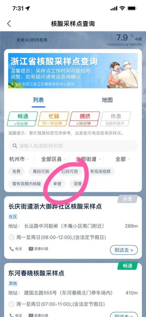 同时,有读者发现,点开核酸采样点查询,还能查“单管”核酸采样点。