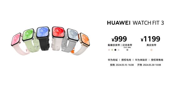 华为WATCH FIT 3售价999元起,将于5月15日16:08开启预售,5月30日10:08全渠道正式开售。2024年5月15日至6月30日期间,在华为官方电商平台购买HUAWEI WATCH FIT 3,并在2024年5月30日至6月30日期间参与买家秀活动、点亮活力三环满14天,即有机会获得HUAWEI WATCH FIT 3免单资格一份,感兴趣的小伙伴可以在产品详情页查看活动详情。免单奖励全平台官方店铺合计1000份,每个平台官方旗舰店的具体数额请以活动规则展示为准。