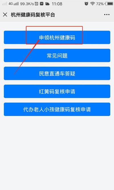 进入杭州健康码复核平台之后,点击第一个申领杭州健康码。