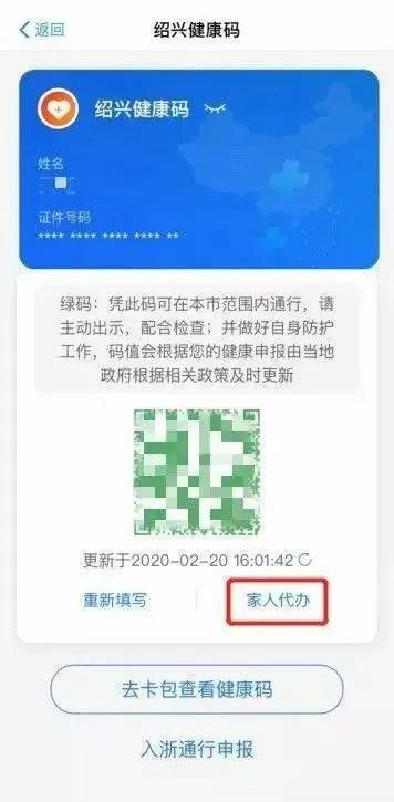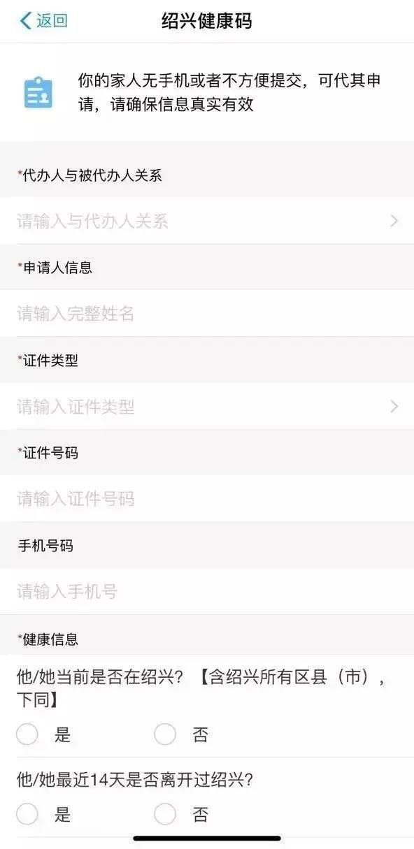 打开“绍兴健康码”,点击下方“家人代办”,即可进入代办页面,信息填写时请确保真实。