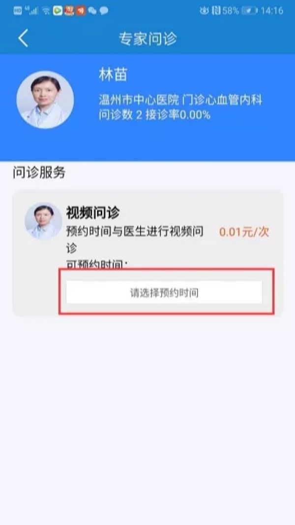 在“互联网医院”界面上,可直接向医生发起视频问诊,按提示选择问诊时间后并支付费用,提交订单后,医生接诊与患者约定时间进行视频问诊。