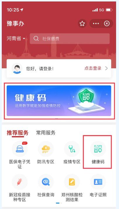 1、在支付宝搜索 “豫事办”点击进入小程序(或者在支付宝搜索“河南健康码”,进入领取页面);
