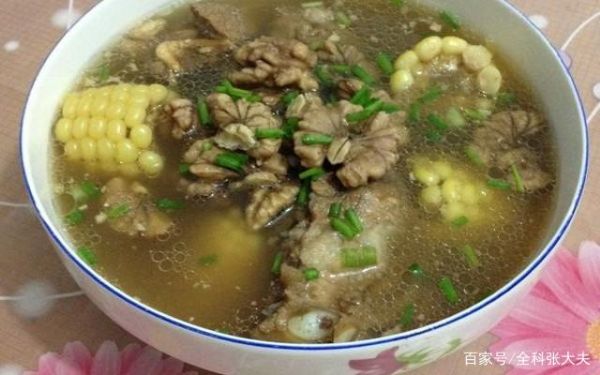 对于喜欢煲汤的人来说,核桃也是一种上好的补品。核桃煲汤吃的话,可以益气补肾。对于失眠健忘的人也有很好改善作用。当然,核桃也有禁忌,就是不能与鸡肉、酒一块食用。