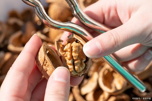 选择外壳完整、无裂缝、无异味的生核桃。用核桃夹轻轻夹破外壳,取出核桃仁。